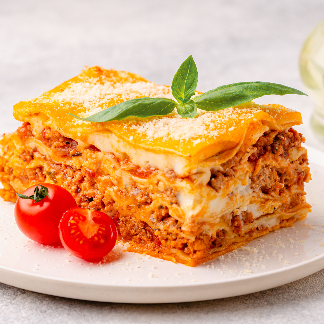 Feuilles de pâtes, viande hachée, sauce tomate, fromage gratiné